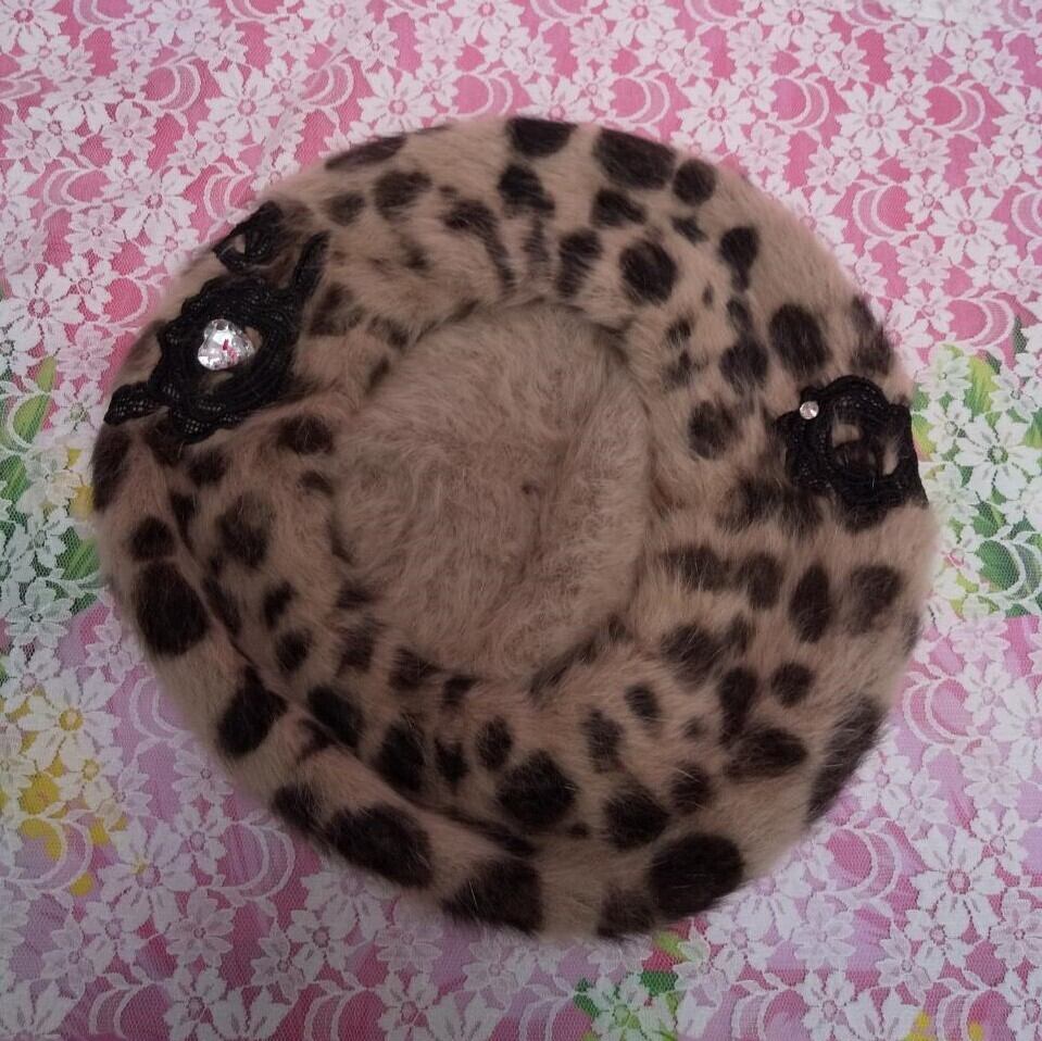 被りやすいアンゴラ混ニット素材にアニマル柄プリントが可愛く、アニマルとバラレースのコンビネーションが個性を引き立てます。