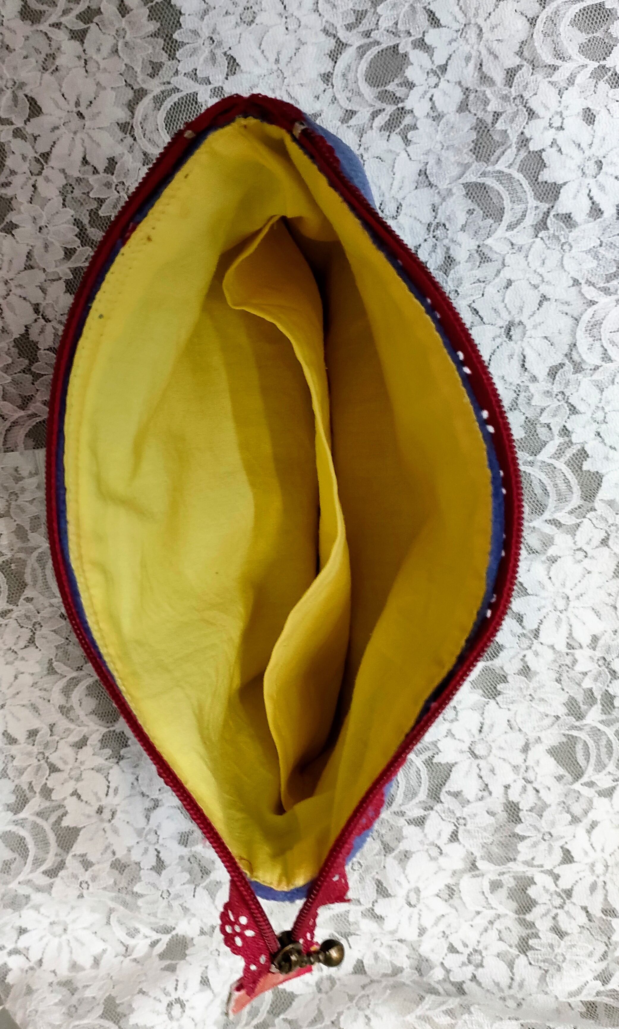 レースファスナーのかわいらさとパッチワークが特徴です。